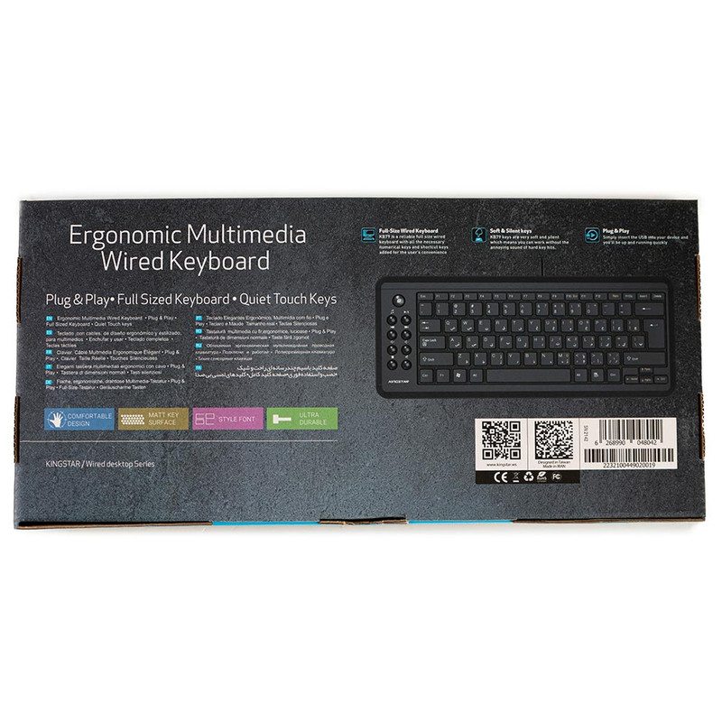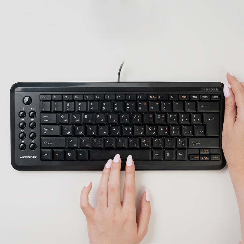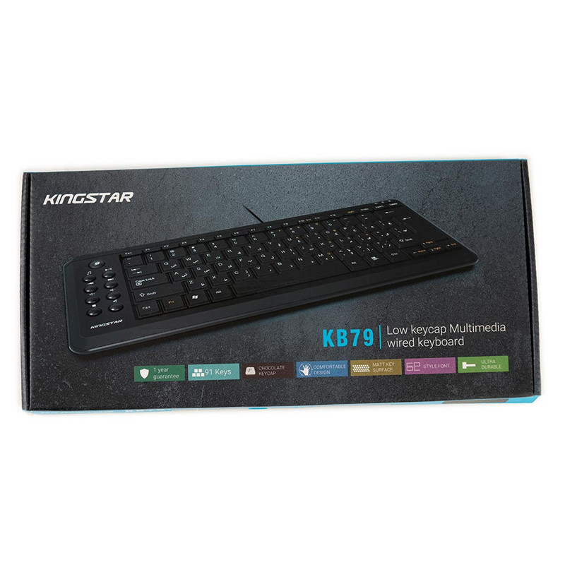 - Volume - Stop - Closure در قسمت کنار کیبورد قرار گرفتهاند. کیبورد کینگستار مدل KB79 برای استفادههای روزمره مناسب است طراحی کلید ها به نوعی است که امکان تایپ کردن در مدت زمانی طولانی را فراهم میکند - دسترسی راحت به تمامی کلید های کاربردی - طراحی نرم و سایلنت کلید ها - با دوام - کلید های مات