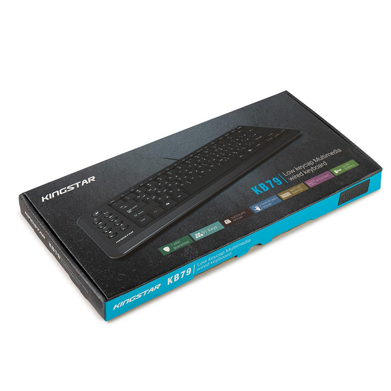کیبورد «KB79» محصولی از شرکت «کینگستار » است که به صورت باسیم و از طریق درگاه USB به کامپیوتر متصل میشود. این کیبورد دارای 91 کلید برای انجام فعالیتهای کامپیوتری است؛ همچنین کیبورد KB79 دارای 9 کلید میانبر برای انجام سریعتر کارهاست که شامل Web Home - Music - Play/Pause - Pre Track - Next Track