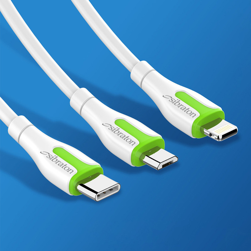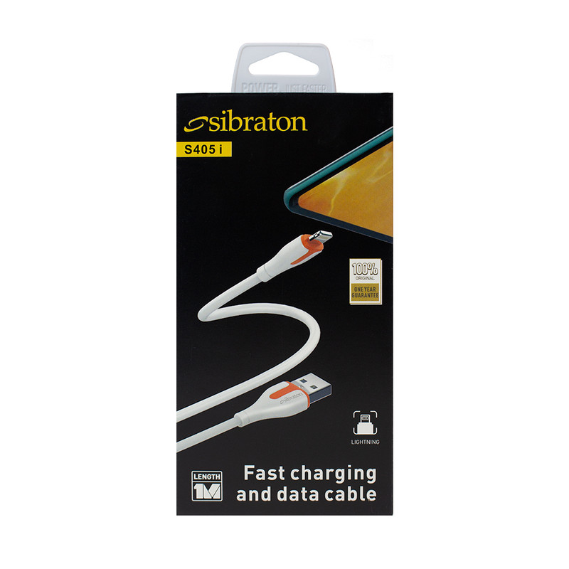 کابل شارژ آیفون Sibraton مدل S405i با طول 1.1 متر با کیفیت بالا با رابط USB به لایتنینگ جهت شارژ کردن و انتقال اطلاعات از انواع گوشی های شرکت اپل (آیفون، آیپد، آیپاد و …) با حداکثر شدت جریان 2.1 آمپر توانایی شارژ انواع تبلت را نیز دارد. همان طور که میدانید سیم شارژر های اپل دارای کانکتور Lightning با 8 پین استفاده از فولاد بدون درز و روکش از جنس PVC با خاصیت ارتجاعی و مقاومت خوبی در برابر پیچیدگی و پارگی و همچنین استفاده از سیستم محافظت در مقابل ولتاژ بیش از حد مجاز سبب میشود از گوشی یا تبلت، پاوربانک و یا هر دستگاهی که به وسیله این کابل در حال شارژ شدن باشد به خوبی محافظت کند.این کابل 2 عدد LED در پایین کانکتورها دارد که نشانگر شارز میباشد.