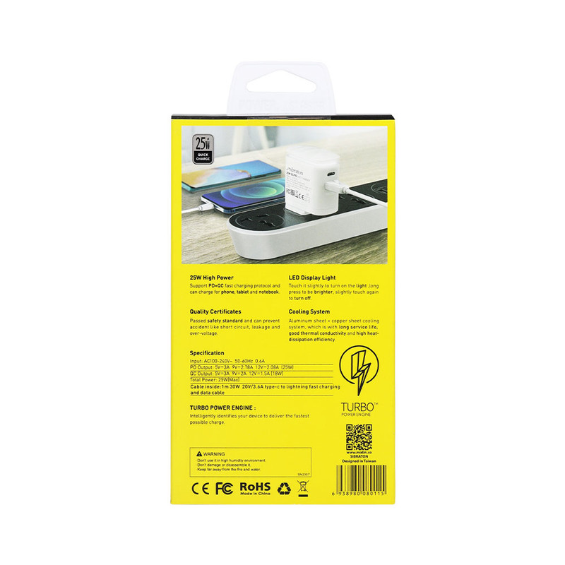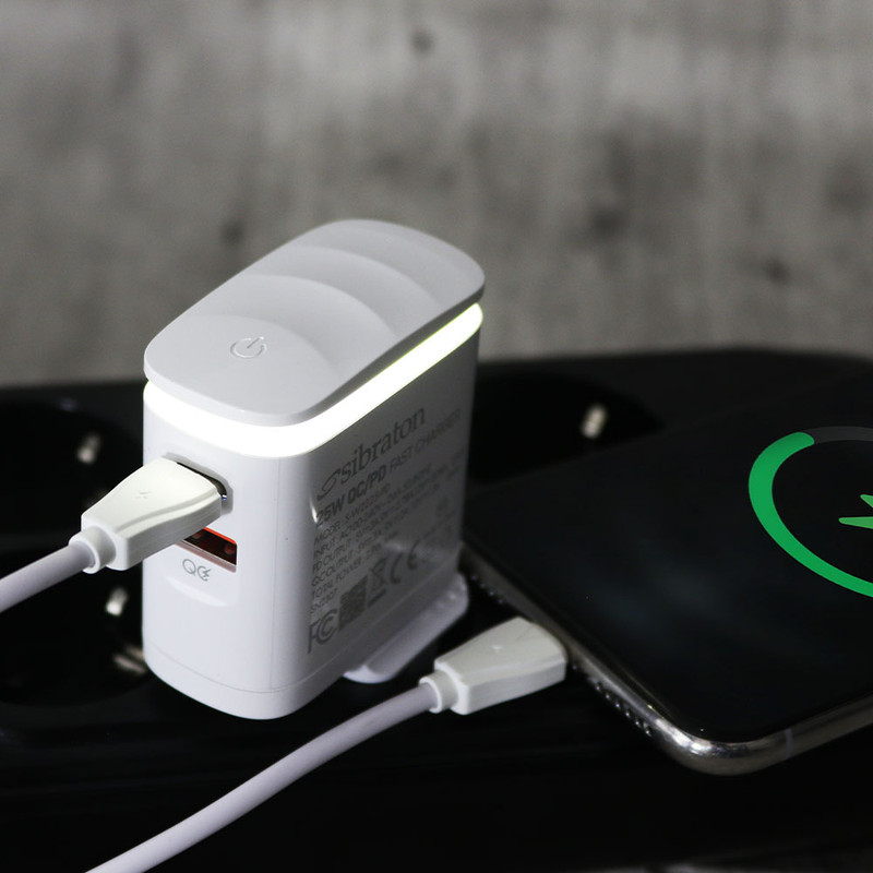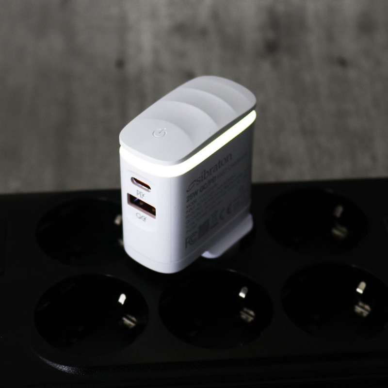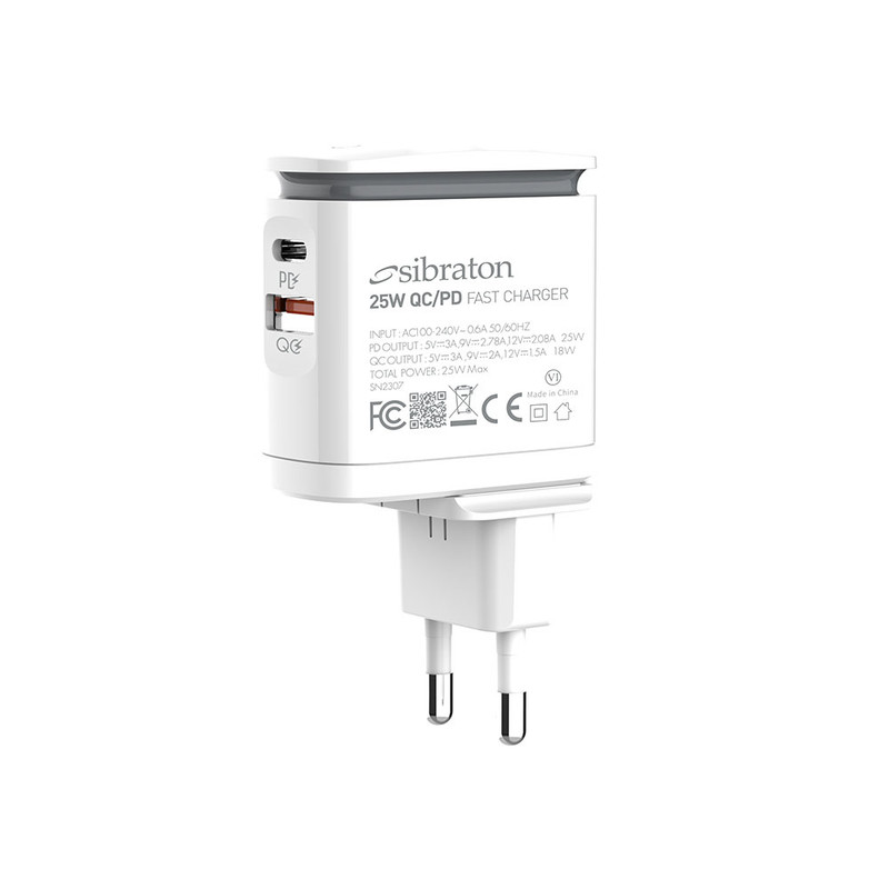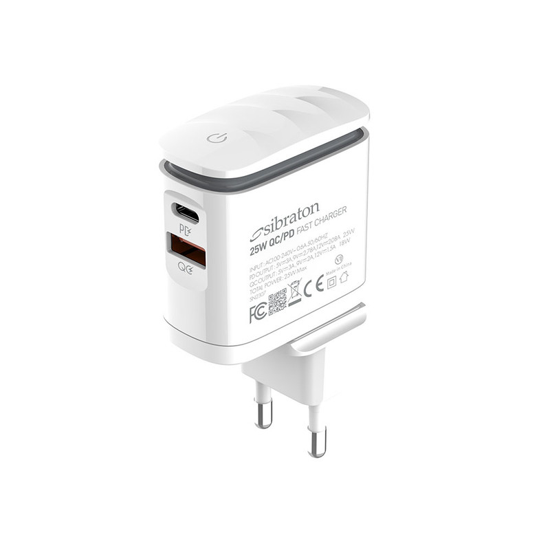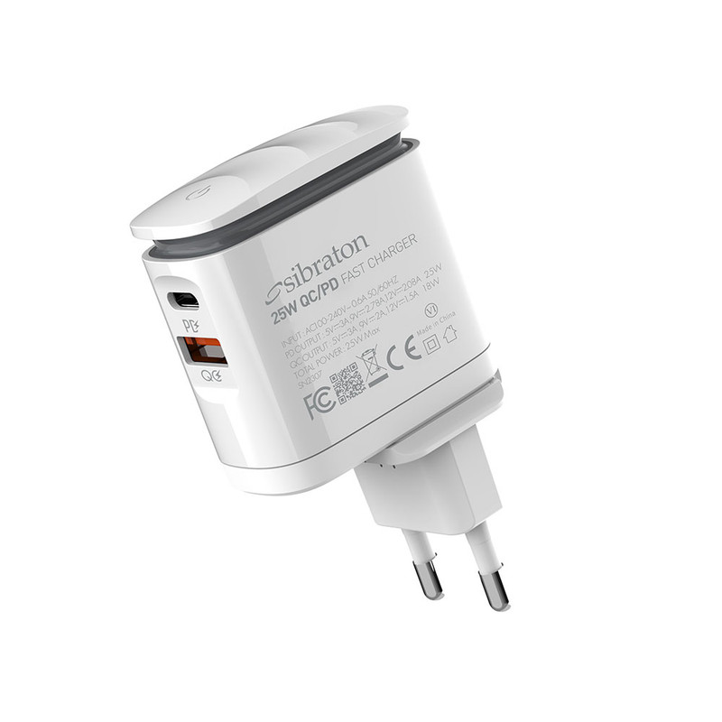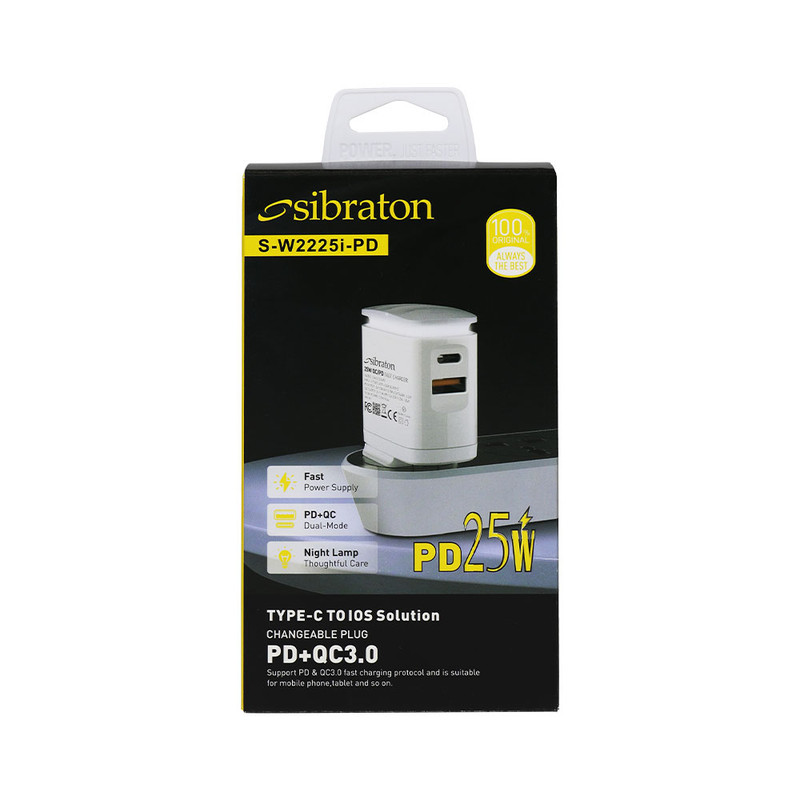 SW2225i PD با توان خروجی 25 وات در حالت بیشینه و با بهرهوری از تکنولوژی Power Delivery و Quick Charge3.0 مناسب برای دستگاه های فست شارژ با توان مورد نیاز ذکر شده میباشد. استفاده از صفحات مسی و آلومینیومی پایداری حرارتی خوبی را برای این شارژر ایجاد کرده است. درگاه USB با توان 18 وات و درگاه Type-C با توان 25 وات، خروجی های این شارژر هستند. جنس شارژر دیواری سیبراتون مدل SW2225i PD از پلاستیک ABS با کیفیت بالا ساخته شده است که دارای قابلیت ضد اشتعال است. وجود یه لامپ LED لمسی نیز از ویژگی های ظاهری این شارژر میباشد.