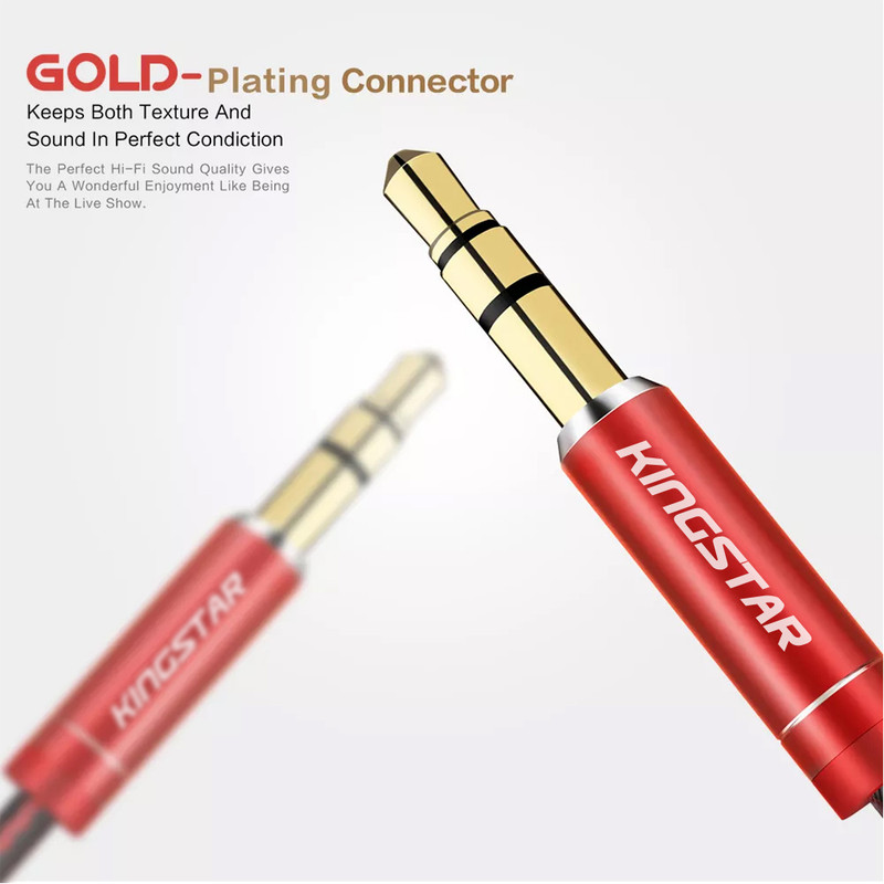 این کابل کمپانی کینگ استار دارای 100 سانتی متر طول و از جنس پلاستیک PVC میباشد. تفاوت این نوع پلاستیک با پلاستیکهای معمولی در ویژگی ضد اشتعال بودن آنهاست. همچنین جنس سوکت این کابل AUX از فلز میباشد. از این نوع کابلهای صوتی عموماْ برای پخش صدا به بلندگو استفاده میکنند یعنی شما میتوانید موسیقی موردعلاقهتان داخل گوشی موبایل را از طریق ضبط اوتومبیل و یا تبلت و حتی اسپیکر نیز پخش کنید. این کالای ساخت کشور چین با رنگهای قرمز-مشکی و مشکی-زرد به بازار عرضه شده است.