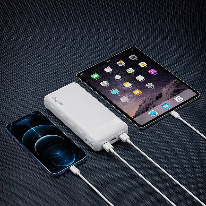 این پاوربانک انرجایزر دارای نمایشگر LCD جهت نمایش میزان شارژ است. همچنین این محصول دارای وزن 10 ± 617 گرم میباشد که در کلاس وزنی پاوربانکهای نیمه سنگین قرار دارد. ابعاد این شارژر همراه نیز 169.2x79.7x31.4 میلیمتر است. این پاوربانک در رنگ سفید و مشکی با ظرفیت 30000 میلی آمپر دارای باتری لیتیوم پلیمری نیز میباشد. همچنین حداکثر توان خروجی کل این کالا نیز 22.5 وات است.