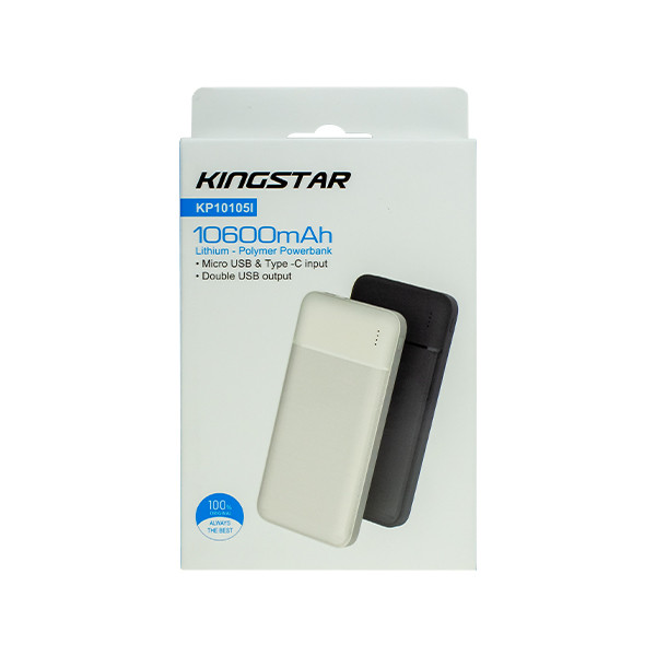پاوربانک کینگ استار مدل kp10105i ظرفیت 10000 به همراه کابل تبدیل و پایه نگهدارنده و شارژر فندکی