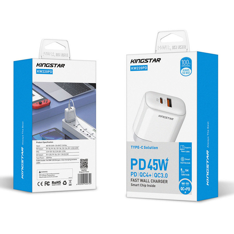شارژر دیواری 45 وات کینگ استار مدل KW220 PD به همراه کابل USB-C