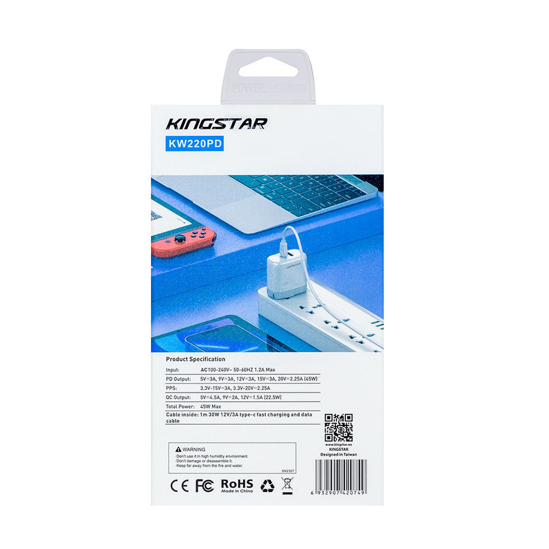 شارژر دیواری 45 وات کینگ استار مدل KW220 PD به همراه کابل USB-C