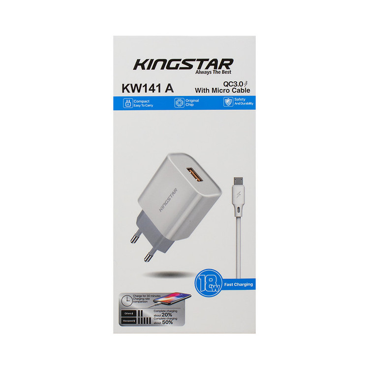 شارژر دیواری 18 وات کینگ استار مدل KW141A همراه کابل microUSB