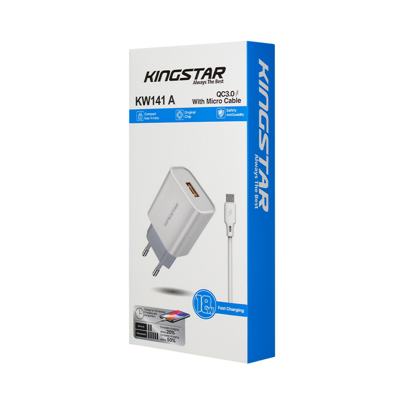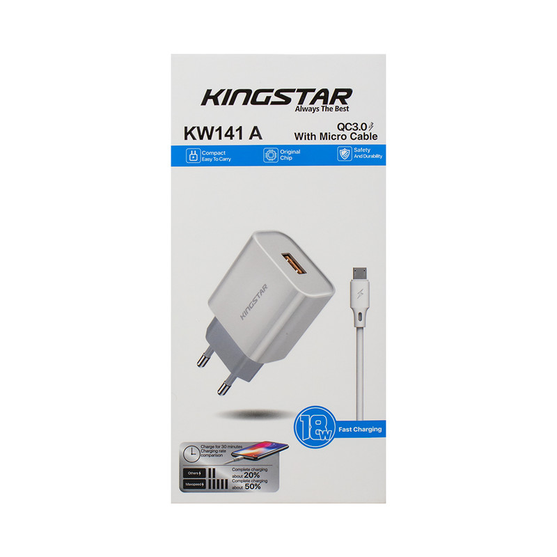 شارژر دیواری 18 وات کینگ استار مدل KW141A همراه کابل microUSB